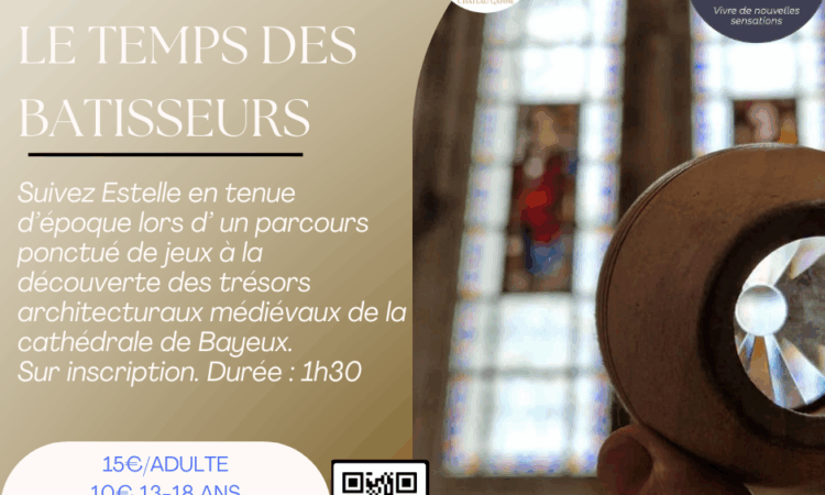 Suivez Estelle, votre guide, lors d’un parcours « le temps des bâtisseurs » ponctué de jeux à la découverte des trésors architecturaux médiévaux de la cathédrale notre Dame de Bayeux.